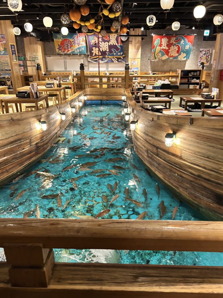 まず向かったのは、新大阪にある釣りができる食事処。 「自分たちで釣った魚を食べる」というシンプルなエンタメですが、ここでメンバーの性格が恐ろしいほどハッキリと分かれました。
